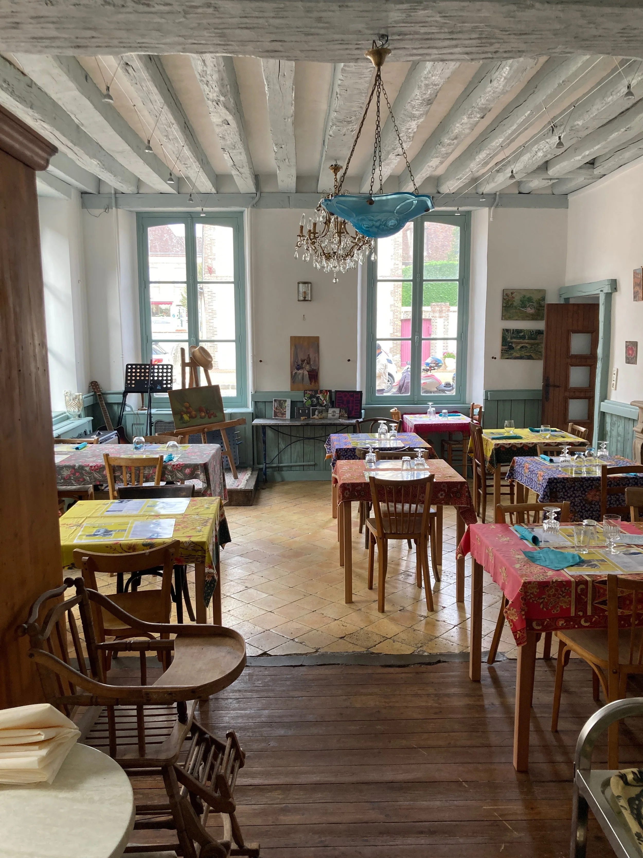 Nichée dans le cœur du bâtiment historique, la salle à manger des Lapins Bleus est un lieu de rencontre et de plaisir simple.