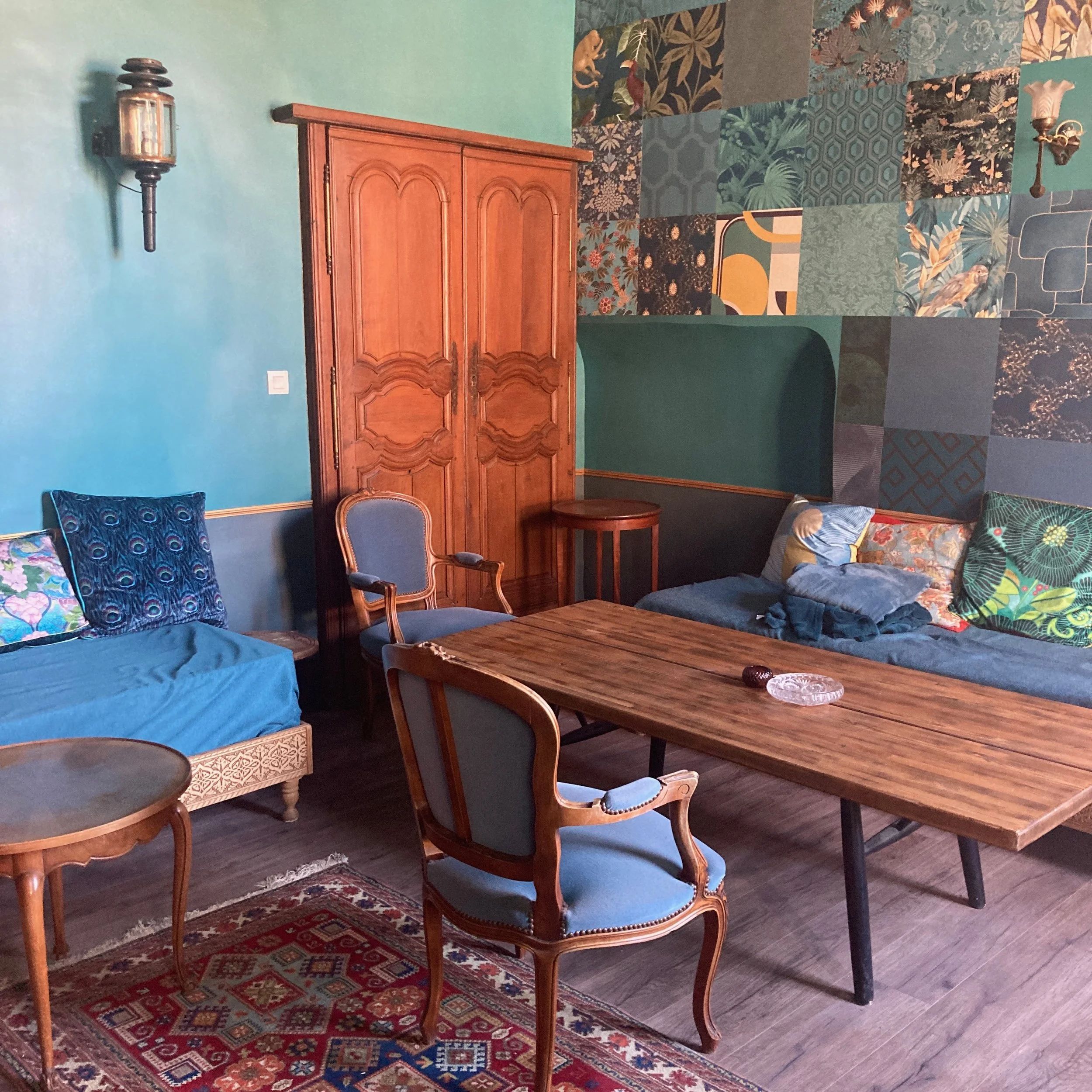 Parce que nous aimons donner une seconde vie aux trésors du passé, la plupart des éléments de décoration et de brocante présents dans les chambres sont issus d’un travail d’upcycling poétique : tissus anciens réinterprétés, luminaires restaurés, papiers peints assemblés comme des tableaux.